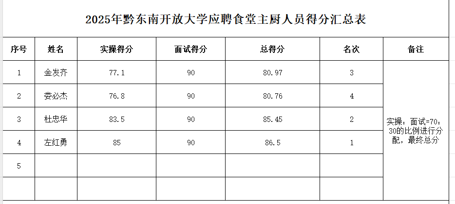 經(jīng)考核小組綜合評議,現(xiàn)將考試結(jié)果公告如下: